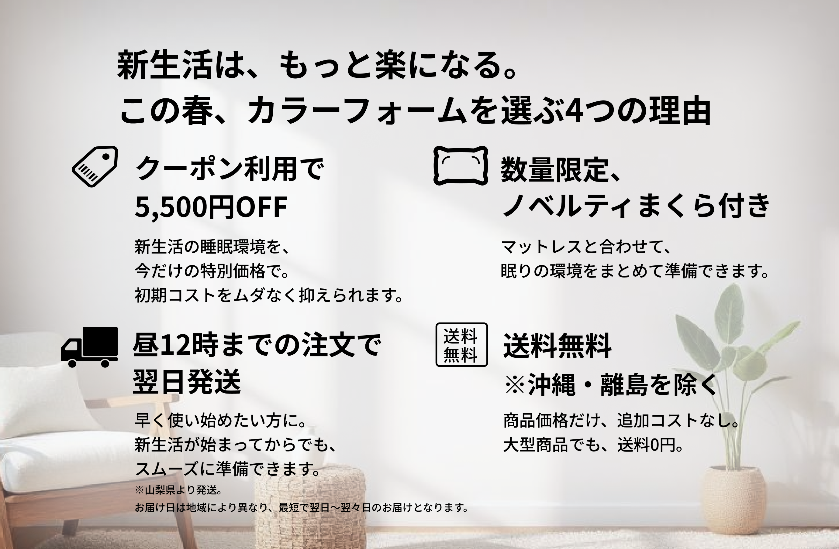 新生活の睡眠環境を、今だけの特別価格で。