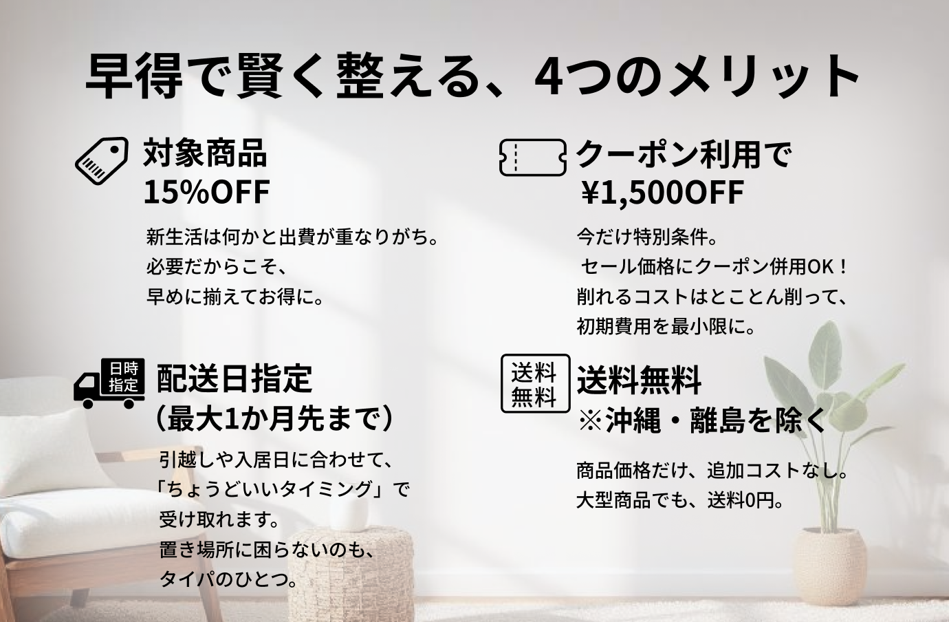 必要だからこそ、早めに揃えてお得に。